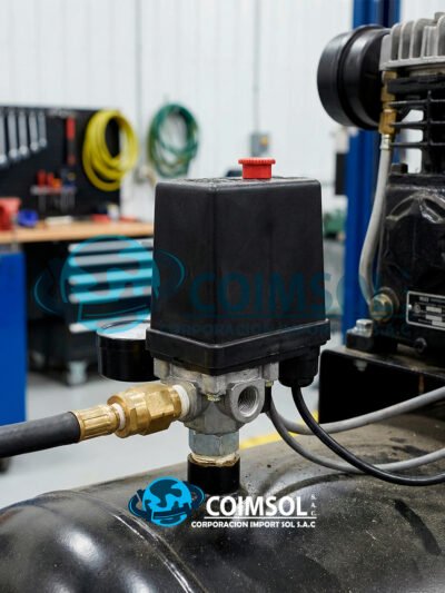 Presostato automático para compresor con presión ajustable hasta 175 PSI, ideal para controlar el encendido y apagado del equipo de forma segura y eficiente. Cuenta con 4 vías de conexión y válvula de alivio para mejor protección del motor. -