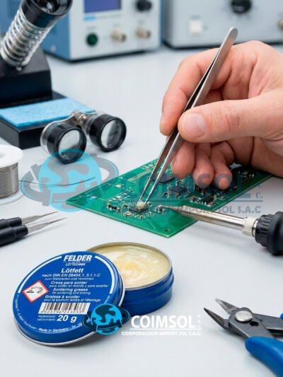 Pasta de soldar LOTFETT de 50 gramos, ideal para trabajos de soldadura electrónica y aplicaciones de precisión. Fabricada en Alemania, ofrece un desempeño confiable para procesos de ensamblaje, reparación y mantenimiento. -